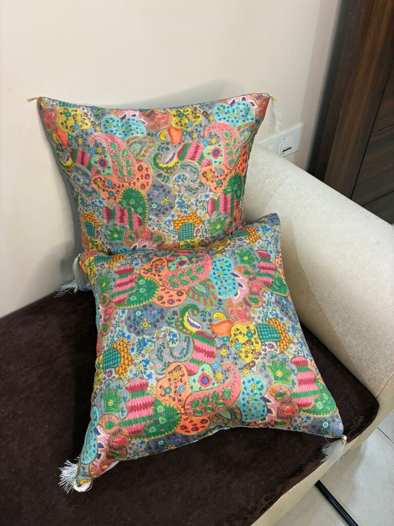 Olive Green & Gold Botanical Cushion Cover Set of -2