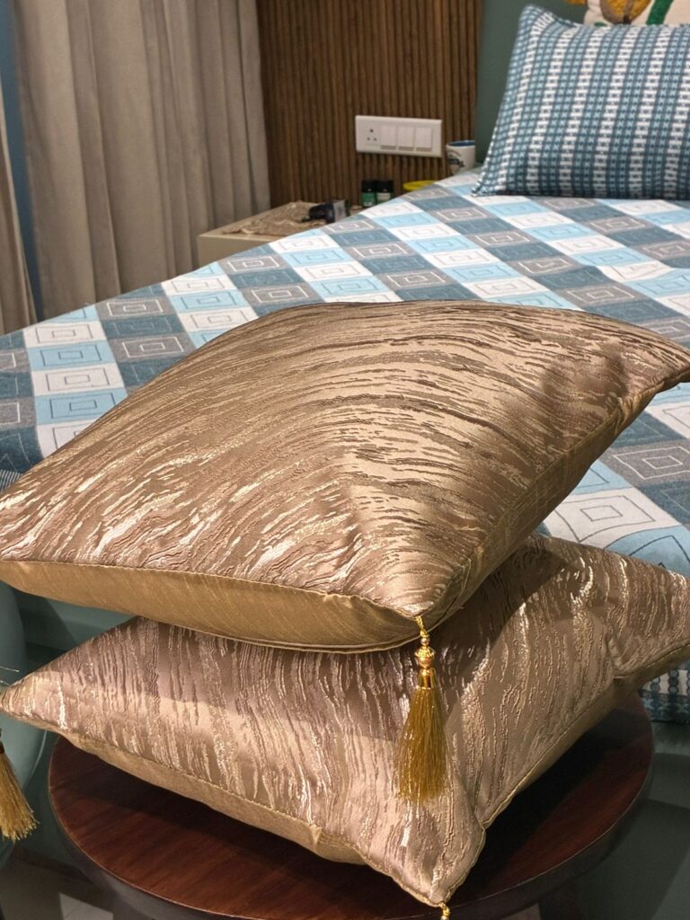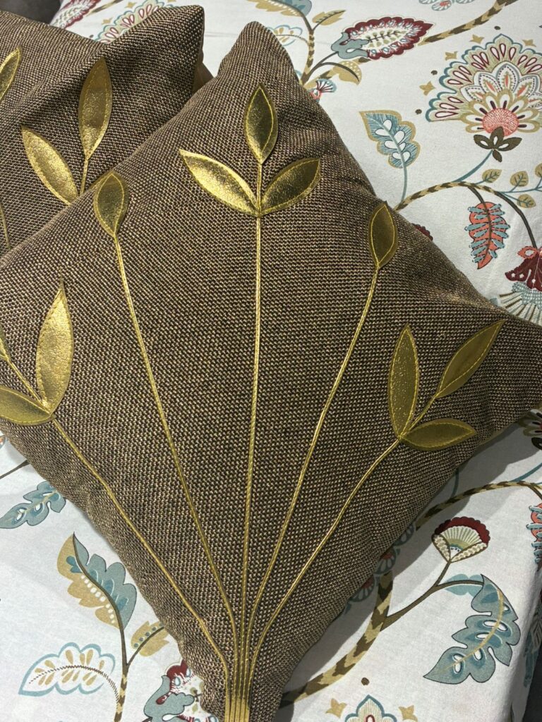 Dark Chocolate & Gold Leaf Cushion Cover Set of -2