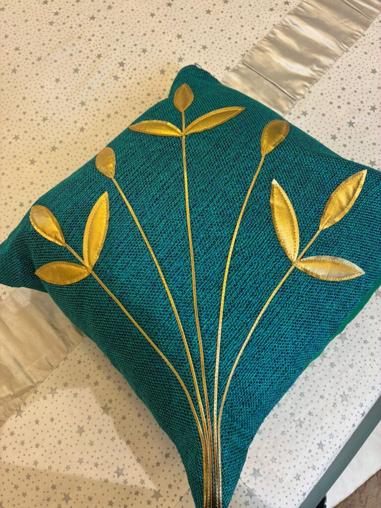 Emerald Teal & Gold Leaf Cushion Cover Set of -2