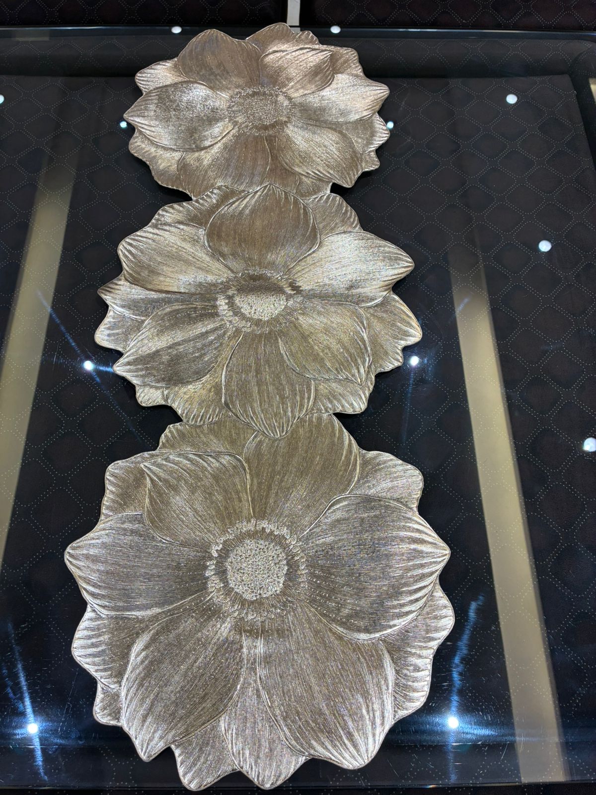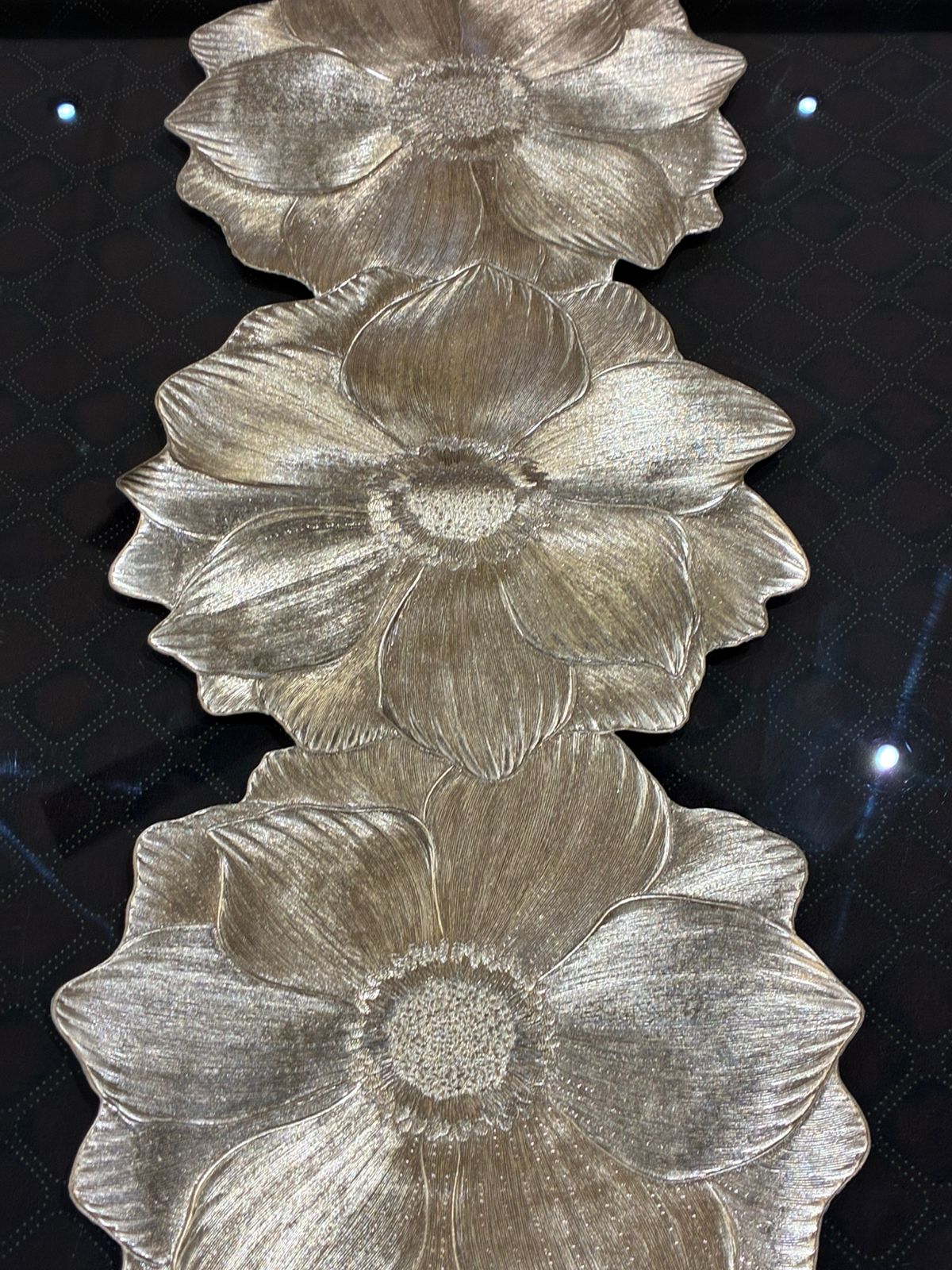 Luxury Floral Gold Table Runner for Elegant Dining Setup 3 flowers