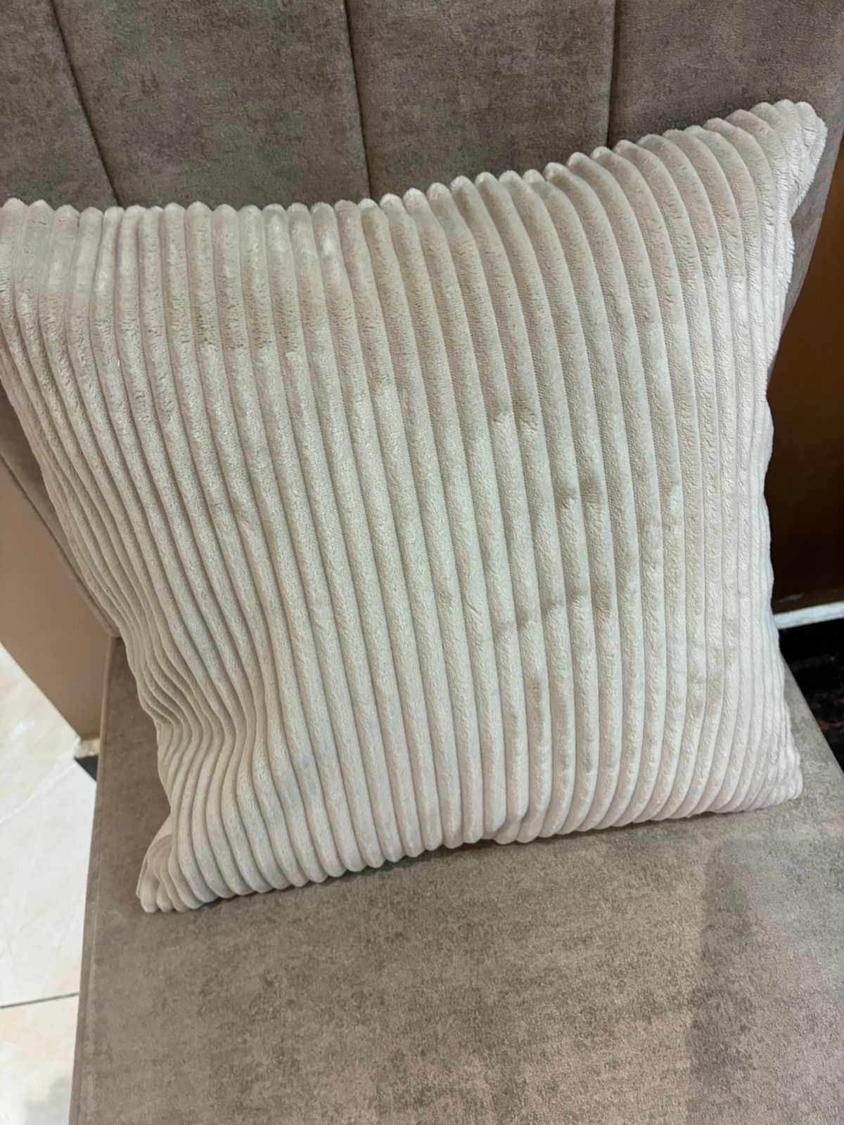 Elevate your home décor with this elegant ribbed velvet cushion cover in a timeless cream tone. Crafted from ultra-soft fabric, its textured vertical stripes add a refined and contemporary touch to any seating space. The neutral color blends effortlessly with a variety of interiors, making it a perfect accent piece for sofas, armchairs, or beds.